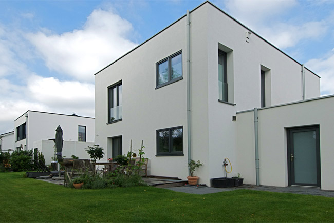 Aus energetischen Gründen und zur Kostenoptimierung wurde das Haus als Kubus mit begrünten Flachdächern in einer kompakten Bauweise realisiert.